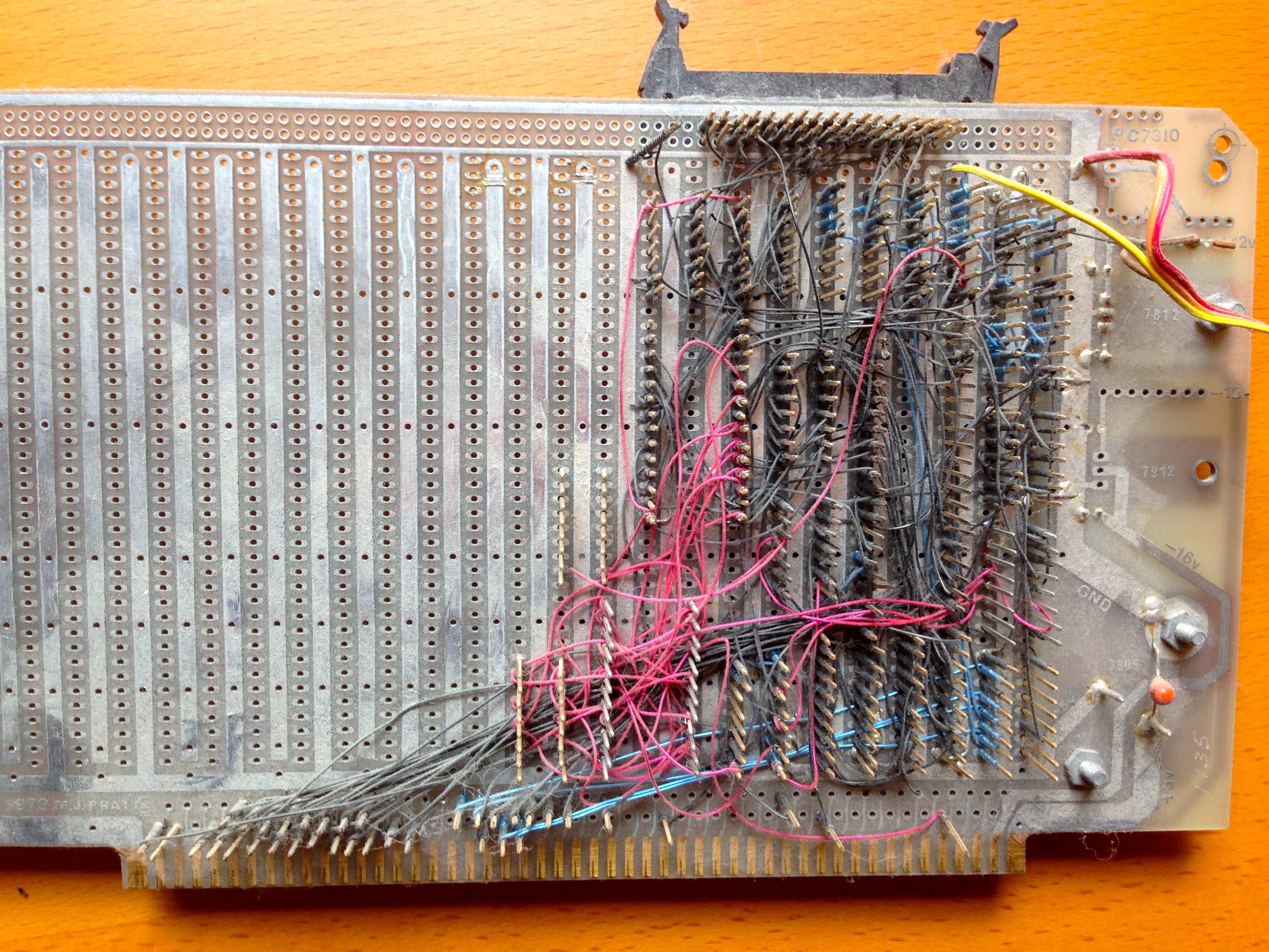 Here is the wire wrap board with all the specialty chips crammed up one end to maximise the board usage:
